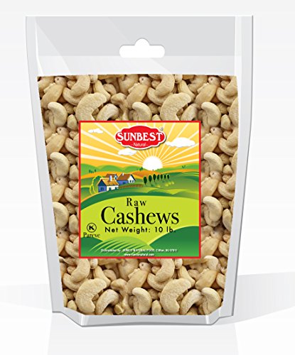 SunBest Natural Whole Cashews Raw, Unsalted, Unroasted in Resealable Bag (Whole, 10 Lb)