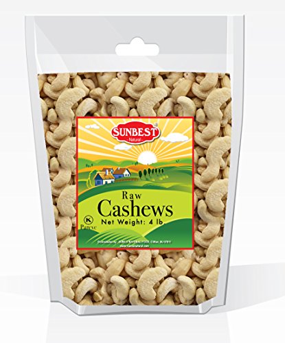 SunBest Natural Whole Cashews Raw, Unsalted, Unroasted in Resealable Bag (Whole, 4 Lb)