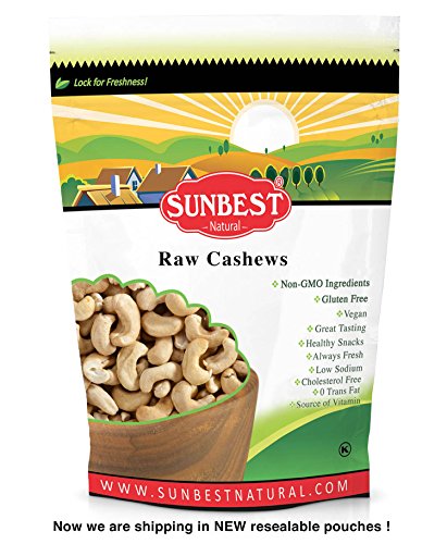 SunBest Natural Whole Cashews Raw, Unsalted, Unroasted in Resealable Bag (Whole, 1 Lb)