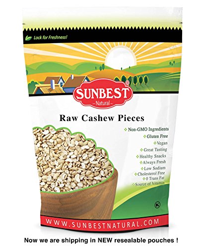 SunBest Natural Cashew PIECES Raw, Unsalted, Unroasted in Resealable Bag (Pieces, 1 Lb)