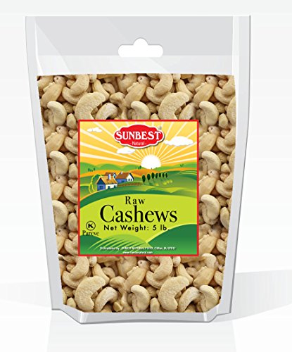 SunBest Natural Whole Cashews Raw, Unsalted, Unroasted in Resealable Bag (Whole, 5 Lb)