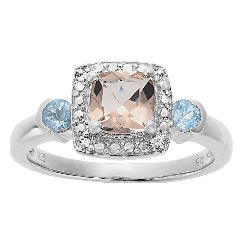 -. Feature : MEASUREMENT - 6 mm Morganite, 3 mm Aquamarine and Diamond Crafted in 925 Sterling Silver. / PERFECT- For all occasions and holidays this ring is the perfect gift for birthdays, weddings, anniversary, or just something to give that "someone special". Morganite and Aquamarine are gorgeous stones making this item a must have for any jewelry collection. / CARAT TOTAL WEIGHT - Morganite 6 MM, Aquamarine .10, Diamond .02 cttw / SATISFACTION - We offer a 30-day satisfaction money back guarantee. If you are not satisfied for any reason, you will receive a full refund upon returning your purchase within 30 days. / ABOUT - Our jewelry collection is an assortment of hand selected fine and fashion jewelry. We carry an expansive selection of gemstones, cubic zirconia and precious metals. This includes a variety of pendant necklaces, dangle, drop and stud earrings, hoop earrings, tennis and line bracelets, rings, polished jewelry, birthstone jewelry etc