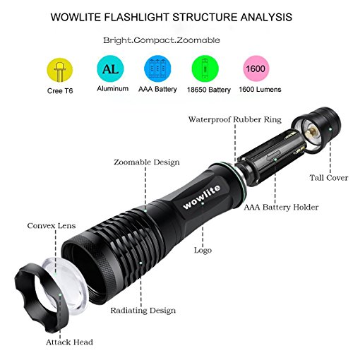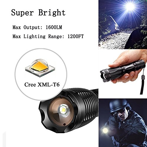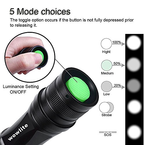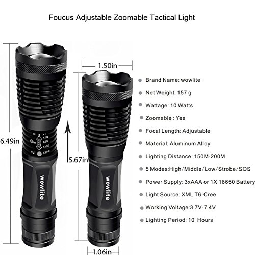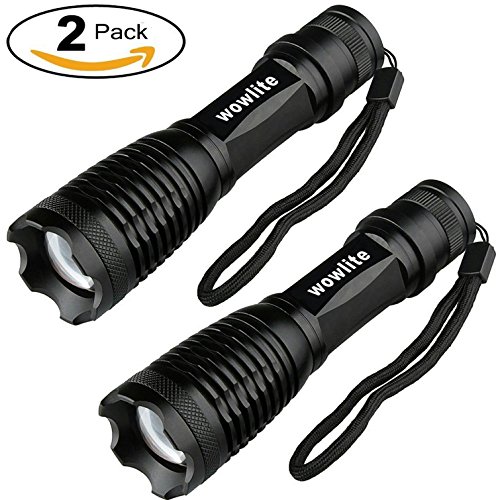 Tactical Flashlight Torches,Wowlite XML-T6 High Brightness Cree LED Taclight ,Rechargeable and Water Resistant Handheld Flashlight with 5 Light Modes & Adjustable Focus (2-Pack)