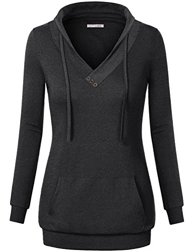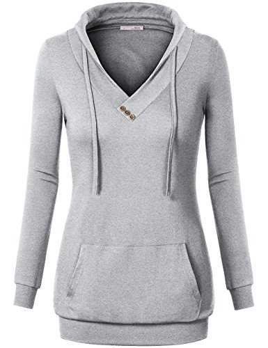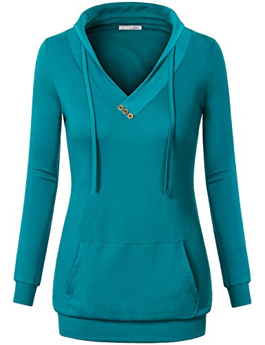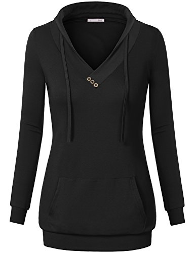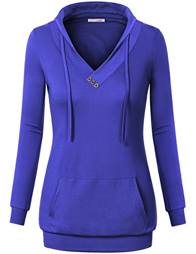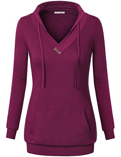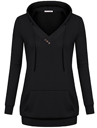 | Messic Women's Long Sleeve Cross V-Neck Pullover Kangaroo Pocket Sweatshirt |