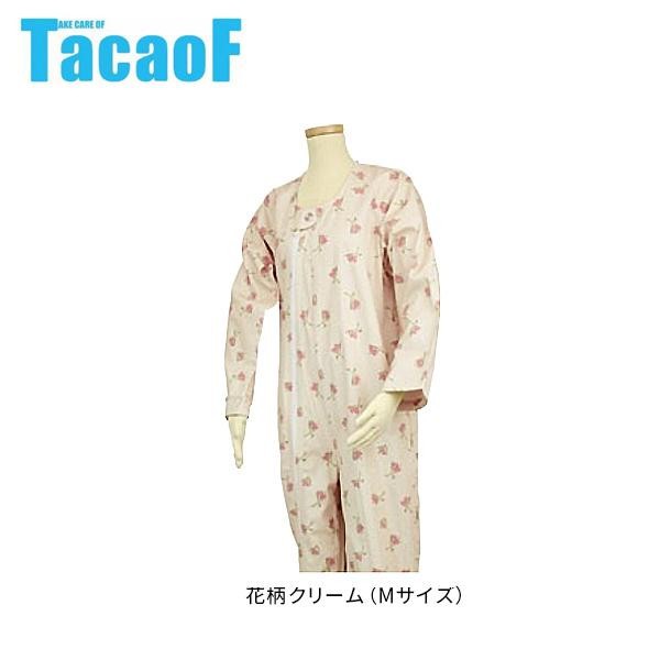 認知症の方の着脱予防に最適。一人では開けにくいタッチホックを使用した介護用パジャマです。 製造国:日本 素材・材質:綿100% 仕様:洗濯機使用可能 ※サプライヤー直送品 ご注文後2~3営業日後の出荷となります【商品名】幸和製作所 テイコブ(TacaoF) エコノミー上下続き服 花柄クリーム UW01 Mサイズ