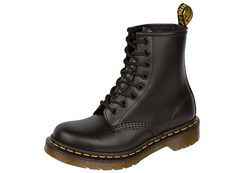 Dr. Martens boots and shoes have become icons, recognized worldwide for their uncompromising looks, durability and comfort. Reworked over the years with new materials, upper patterns and colors, the result is an ever-evolving collection which is true to Dr. Martens heritage, while always remaining contemporary. The embroidered Vonda lace up boots are a twist on Dr. Martens world-renowned floral prints and offer a distinctly feminine spin on the classic Dr. Martens 14-eye boots. They are made of Softy T leather, a lightweight, full-grain leather, with a soft feel, and they feature the original Dr. Martens air-cushioned sole and Goodyear welt construction. Material: Leather.Feature