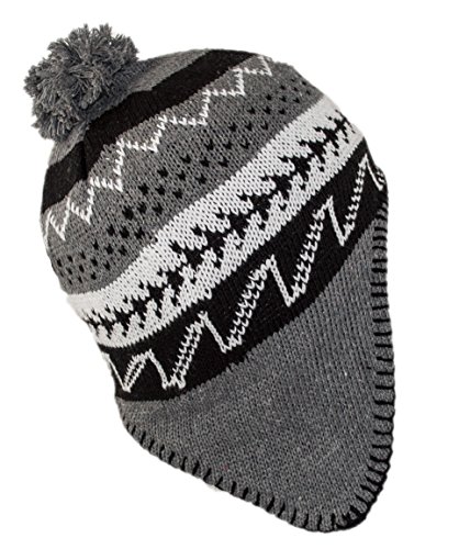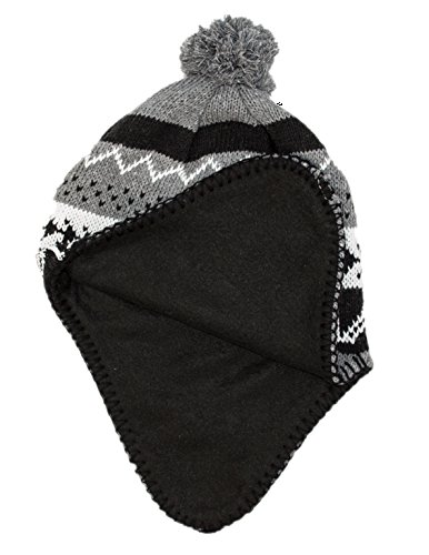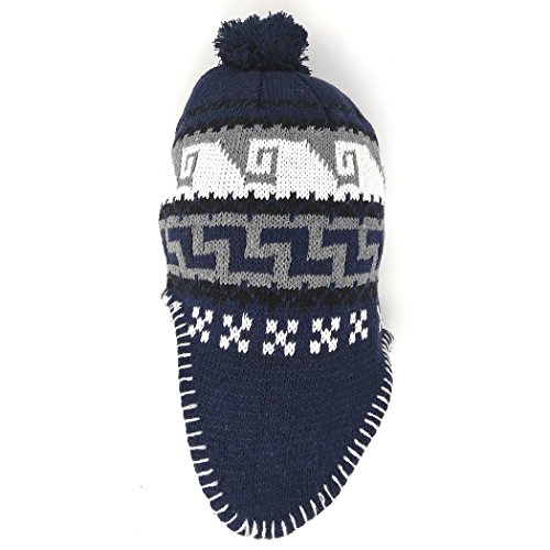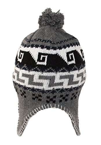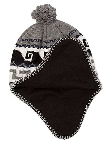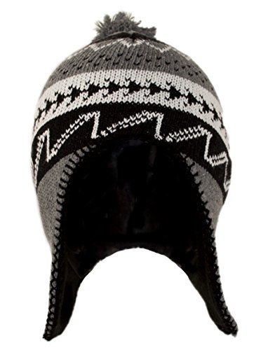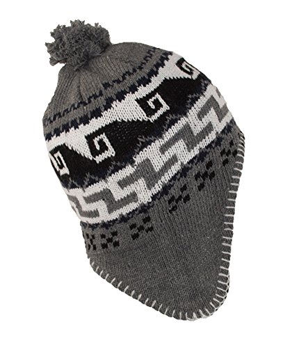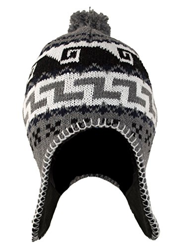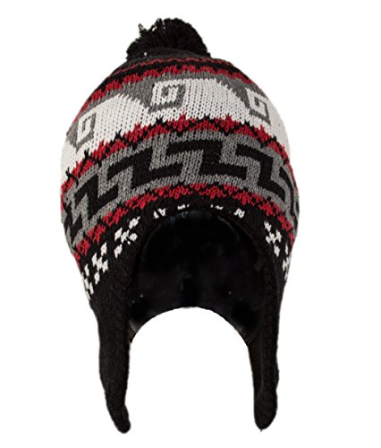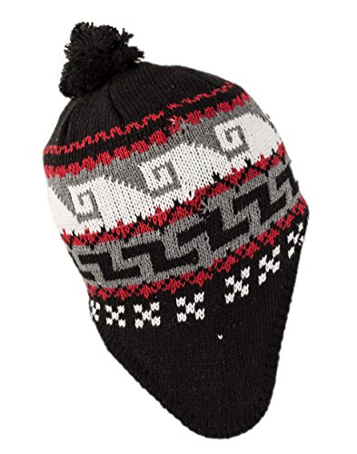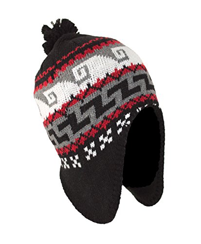 Peruvian Winter Hat Mens, Warm Aztec Pattern Sherpa Ski Beanie w/ Fleece Lining