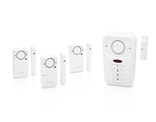 -. Feature : TRUSTED SECURITY FROM A TRUSTED SOURCE - SABRE is what defense is all about. Our Wireless Home Security Alarm System offers one of the easiest installs on the market and pairs it with affordable quality to make your home a safe and secure environment. / VOLUME TO SPARE - Sporting the ability to produce a full 120Db of volume when activated, we're one of the LOUDEST alarms available (audible up to 750 feet (230M) away); also includes chime mode to signal when door has been opened or closed. We offer a time saving value that brings new meaning to affordable self defense! / EVERYWHERE YOU NEED - Our set offers one keypad alarm ideal for your front door with exit/entry delay to prevent false alarms, and three additional door/window alarms that you can place at your weakest entry points to fortify your home. Sensors can be placed on either side of doors / windows for easy set up. Requires 4 x LR44 batteries (included) and 3 x AAA batteries (not included); also includes low battery indicator. / DOUBLE CHECKED - We've done the legwork. Every unit is tested before leaving the factory and is backed by ISO 9001:2008 Certification and 40 years' experience in the security industry. Go with the brand most trusted among law enforcement across the country to keep you safe. Go with SABRE. / GUARANTEED - As with all SABRE products, you're fully protected by our fantastic factory replacement warranty, but we're going to do you one better. For a full 60 days past your purchase date, you're covered for replacement, OR refund, guaranteed. It doesn't get much better than that!