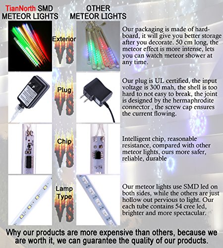 - ENERGY CONSERVATION: The input voltage is AC100-277V , UL Power supply the output voltage is DC12V.It can connect two Set meteor lights, three Set meteor lights shared a transformer, you can save your socket.