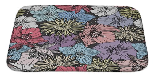 Gear New No Slip Microfiber Memory Foam Vintage Graphic Flower Pattern Bath Rug Mat, 34" X 21"