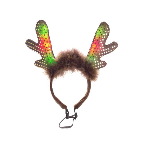 Studio : Kyjen Publisher : Kyjen Binding : Misc. Product Description This holiday season, let Fido join in the festivities with our LED Headband Antlers. Perfect for family photos, sweater parties and general joviality, these Antlers features red and green blinking lights. Plus, an adjustable strap allows you to size to the perfect fit. With LED Headband Antlers, furry friends can finally join in the holiday fun. 0