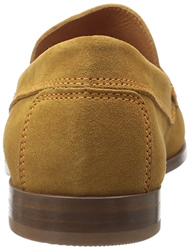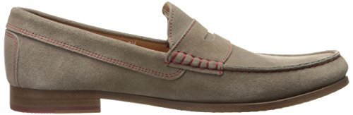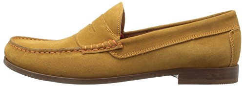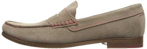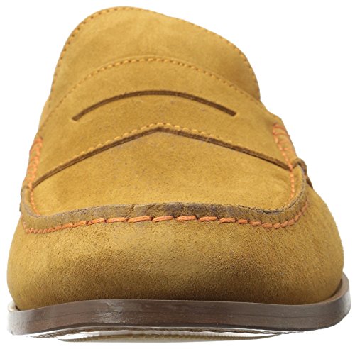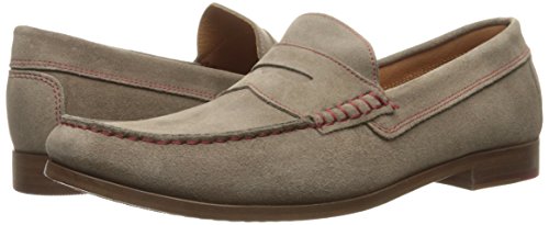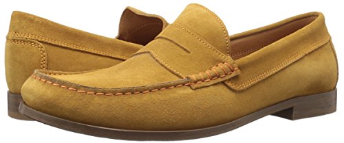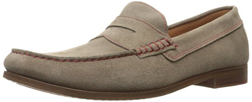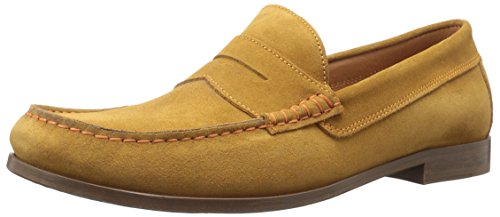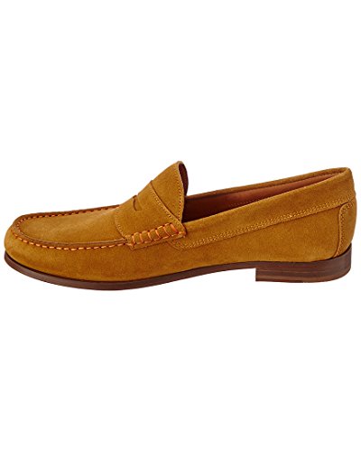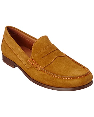 Product DescriptionUpper is soft calf suede with contrast stitch detail. penny moc detail. fully leather lined. outsole is brushed leather with rubber plug insert for better wear. walnut color stacked leather heel. made in italy0