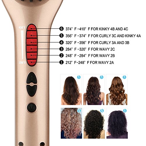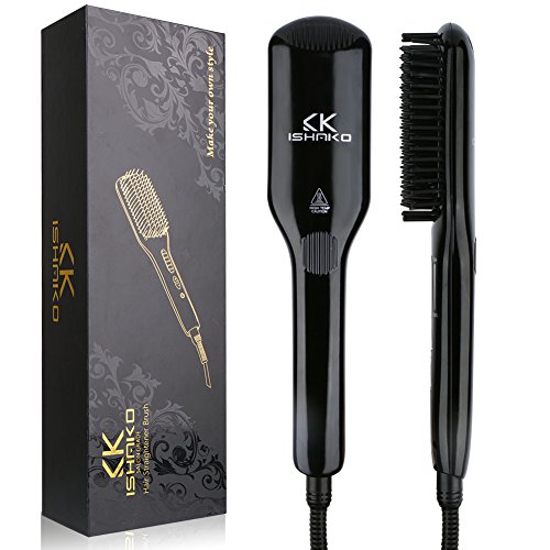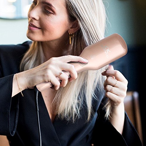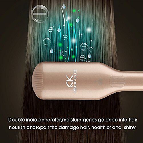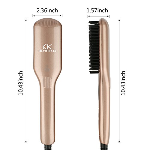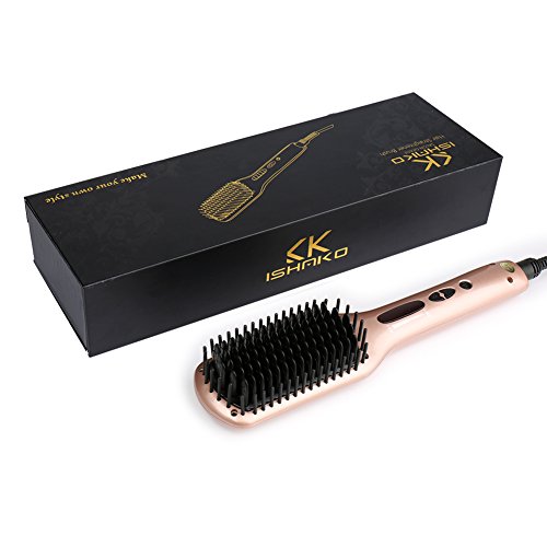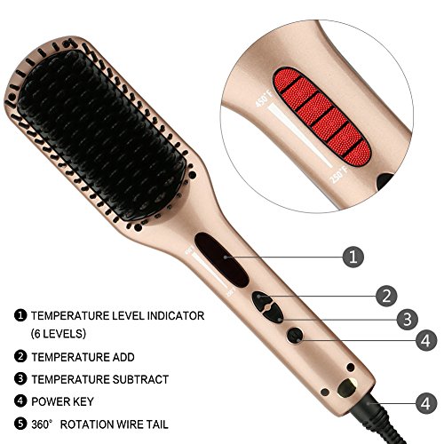 Color: Black/Rose goldHighly recommend to buy if you struggling every morning with your hair.Hair Shinier and SmootherAnti-static technology reduces the amount of negatively charged particles during styling. Diminish frizz and fly away while boosting style control. Neutralizing positively charged hair that can give your hair a frizzy, unkempt look, negative ions have the opposite effect resulting in soft and silky hair, which can lock moisture in the hair, smooth rough splits, neutralize static electricity.Maximizing Hair ContactUnlike oval shaped brush, with the new design comb teeth and straight sides you can get right up to your scalp, and brush it all the way to the roots in one motion by covering much hair.Simple to operateHair straightening brush allows you to straighten hair at home on your own. High end liquid crystal display lets you control and monitor temperatures easily, and the 360 rotable wire joint to prevent wire twining and gives you a smooth experience every time. Portable for travelIt isn't a huge brush so it doesn't take up lots of room, you can take it to travel to anywhere. Package Includes:1 x Hair Straightener1 x User ManualTips for best results: ✔ Tip 1: Dry and brush your hair.✔ Tip 2: You are recommended to apply heat protectant or Argan or coconut oil. ✔ Tip 3: Section your hair and put it deep into the inner area of the brush. ✔ Tip 4: Brush slowly in a pulling motion.Don't use the brush when hair is wet. Recommend brushing your hair first before every use this hair straightening brush.Feature