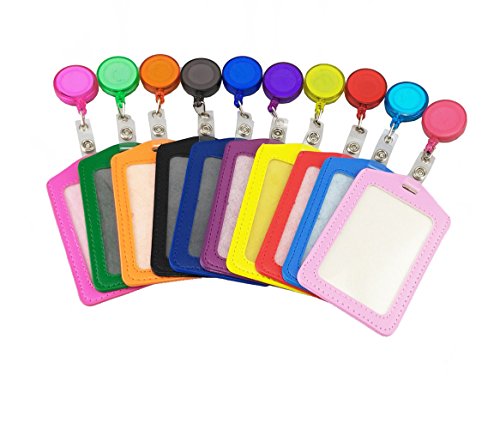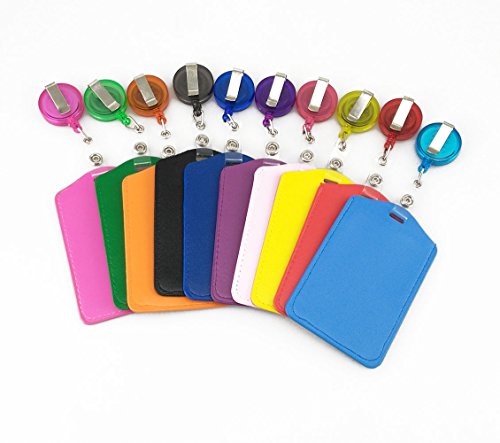 yueton Pack of 10 Leather ID Badge Card Holder with Retractable ID Badge Reel