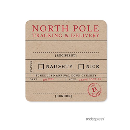 Andaz Press Christmas Collection, Square Gift Label Stickers, North Pole Tracking, 40-Pack, Unique Christmas Stationery, Kraft Look, Funny Gift Present Packaging