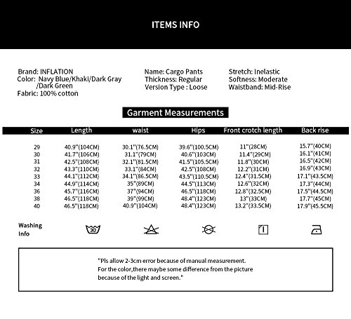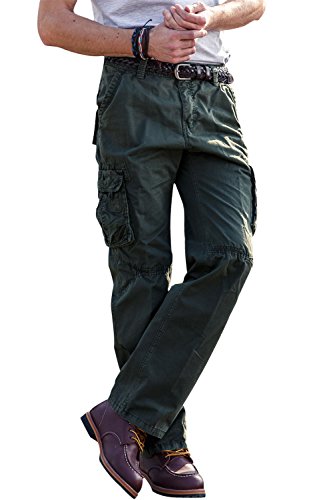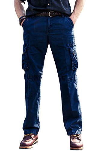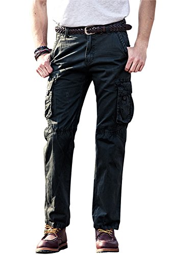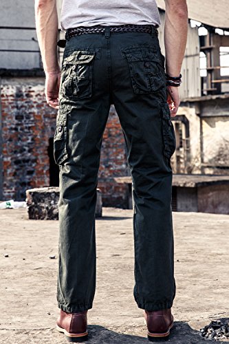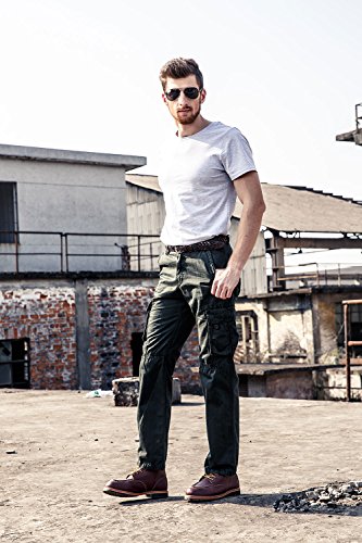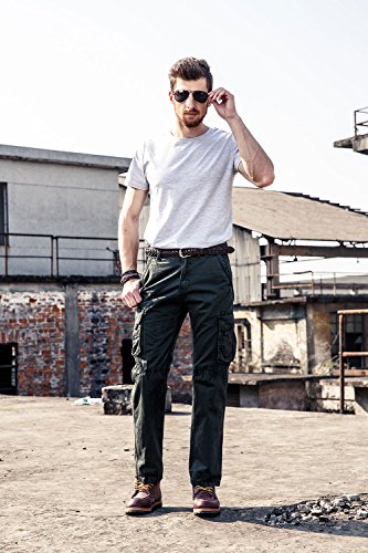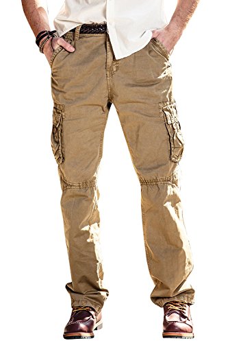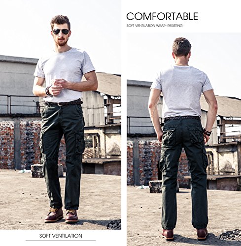 2.LARGE CAPACITY with MULTI-POCKETS: Cargo/Casual pants for mens featuring two slash pockets and two rear pockets. Two additional cargo pockets(leg side pockets), perfect to hold your mobile phone and your keys. Quality zipper and button for closure. Belt loops design for waist adjustment. Straight leg/Mid rise/Loose fit