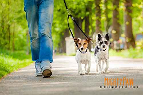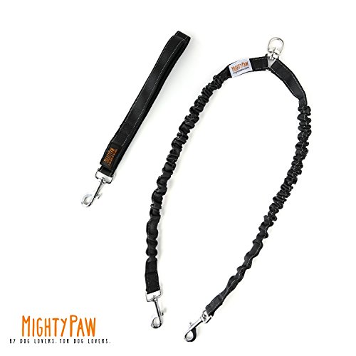 Studio : Mighty Paw Publisher : Mighty Paw Binding : Misc. Product Description Mighty Paw BungeeX2: See why Mighty Paw customers are raving about the innovative bungee double dog leash. Experience for yourself the most comfortable and convenient way to walk 2 dogs. What makes us different? THE BUNGEES: Walking 2 dogs at once requires counteracting strong forces from our loving playful dogs. Why not let our comfort-action bungee do some of that work for you? Physical therapists recommend Mighty Paw BungeeX2 for its unique formula of strength and flexibility. This feature reduces unneeded stress to the wrist, elbow, shoulder, and neck. In addition you will love the energy you save. TANGLE FREE: Enjoy the peace of mind of our heavy duty tangle-free swivel leash attachment. You will never have to worry about your dogs getting tangled with Mighty Paw BungeeX2. WEATHER-PROOF MATERIAL: As with all Mighty Paw products, BungeeX2 is made the highest quality material including weather-proof nylon and durable hardware to ensure its use for years to come. REFLECTIVE STITCHING:To keep you and your dogs safe and visible when the sun goes down we added reflective thread stitched along the entire length of the handle and bungee. 100% SATISFACTION GUARANTEE: If for whatever reason, you don't absolutely love your Mighty Paw BungeeX2, just return it, and we'll refund every penny. FREE GIFT:To say "thank you" for being a customer, every purchase includes our stylish wall hook. ($8.99 value) Use it to hang your leash when not in use. CHOOSE YOUR SIZE: X-LITE: Dogs 0-10 lbs | LITE: Dogs 10-30 lbs | STANDARD: Dogs 30-100 lbs. SPECIFICATIONS: Optional Handle 36" Length. Individual Bungee: Resting Length: 24" Elongated Length: 36" Width: 1" (Standard) | .78" (Lite) | .6" (X-Lite) 0