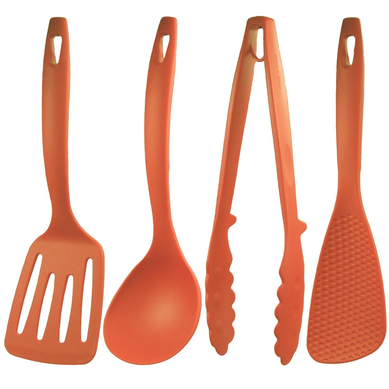 サイズ:フライ返し 230x70mm / おたま 230x75mm / トング 218x75mm / ヘラ 230x60mm 素材・材質:66ナイロン(耐熱温度210度) 生産国:日本/燕市 個別重量:フライ返し 32g / おたま 39g / トング 35g / ヘラ 34g セット内容:フライ返し/