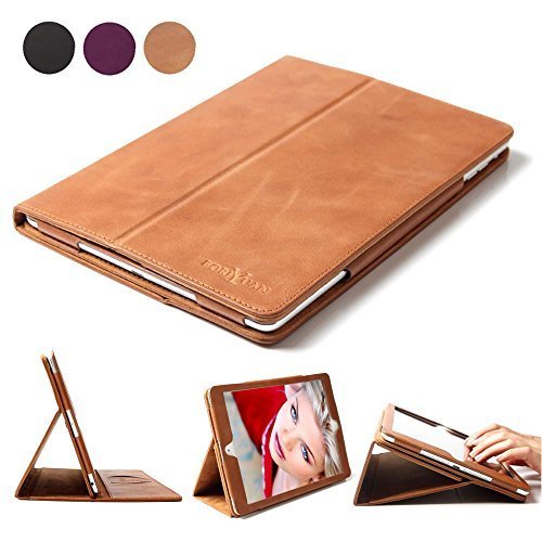 iPad Air Case, Boriyuan Folio Genuine Leather Stand Smart Cover for Apple iPad Air +Stylus+Screen Protector, Vintage Brown