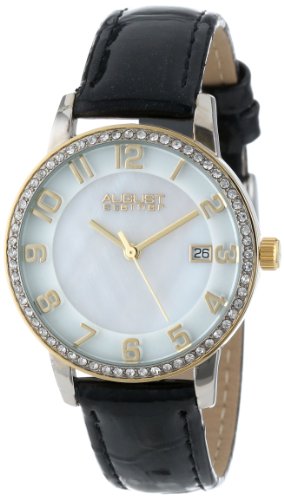 -. Title : August Steiner Women's AS8056YG Swiss Quartz Mother-Of-Pearl Crystal Leather Strap Watch