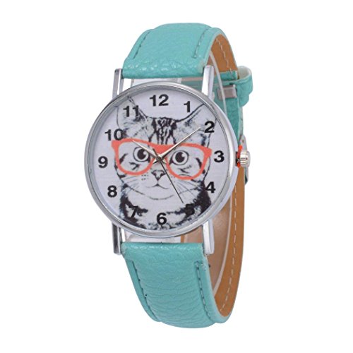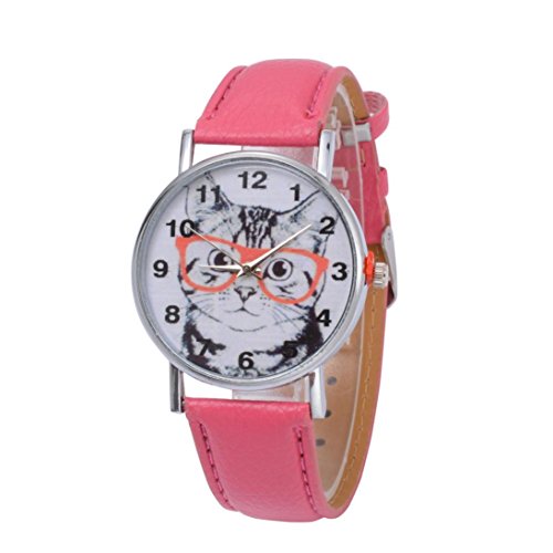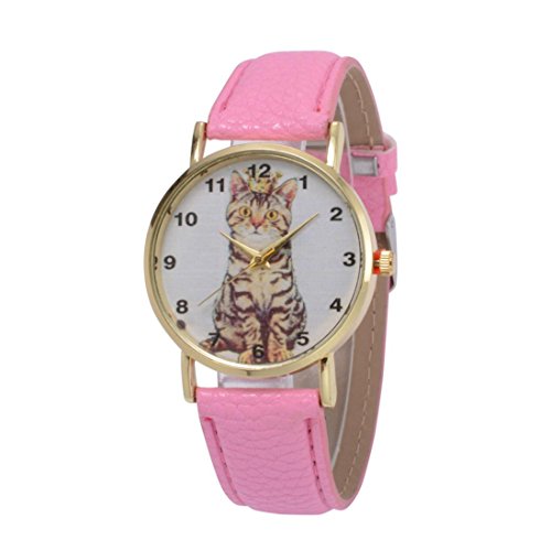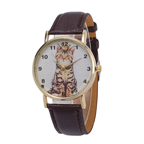 -. Title : Oksale Women Cat Design Leather Quartz Watch Simple Round Wristwatch