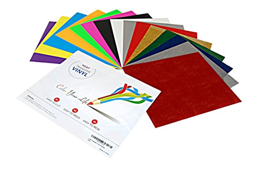 Heat Transfer Vinyl Sheets | Flexible & Thin | Easy To Cut, To Weed & To Iron | 15 Assorted Colors In One Bundle | For T Shirts, Clothing, Hats | Teflon & A4 Instruction Included | 12 x 9,8 Inches