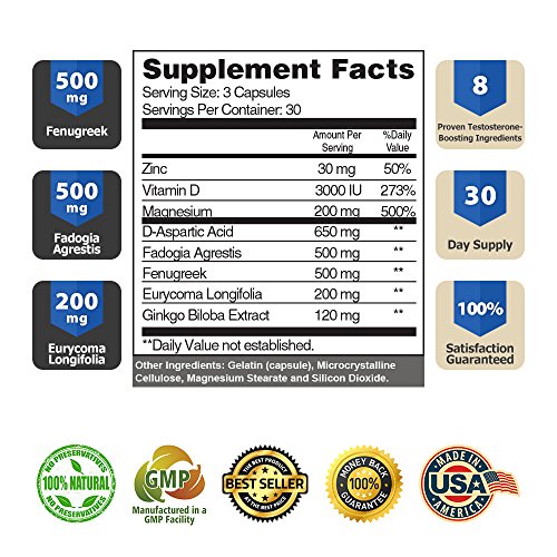 The PROVEN science behind our product makes it truly unmatched. 500mg Fenugreek stacked with 650mg of D Aspartic Acid, plus testosterone building blocks Vitamin D, Magnesium, and Zinc provide a pure, powerful, proven natural testosterone booster