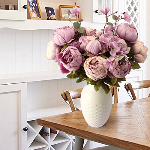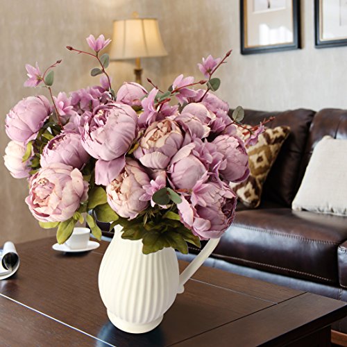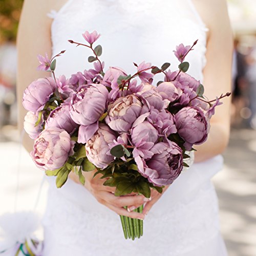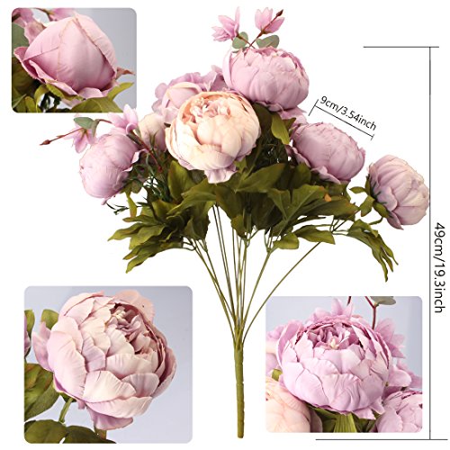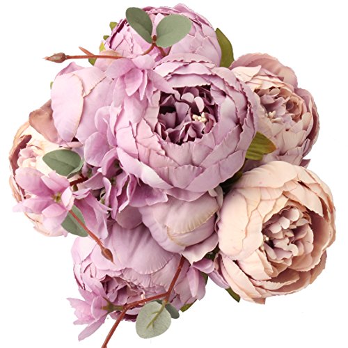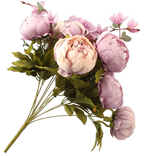 Fionat Vintage Artificial Peony Bouquet Silk Flower Arrangement Home and Party Decor (Light Purple)