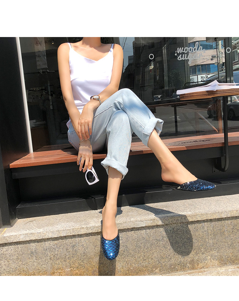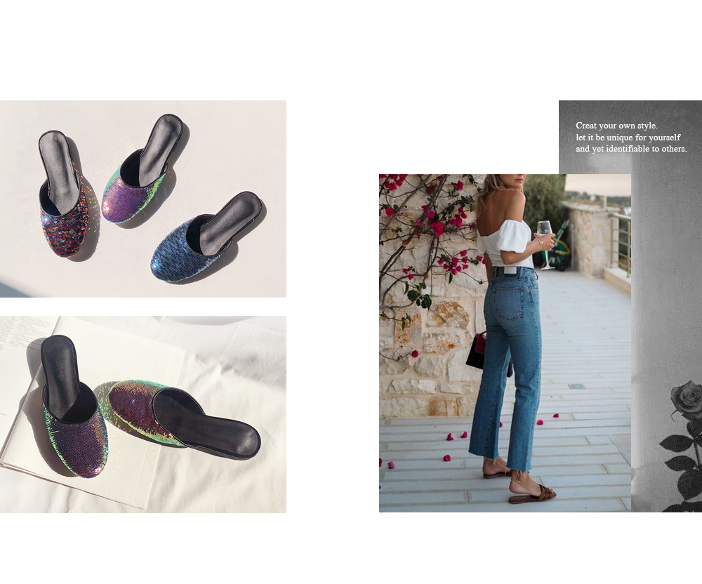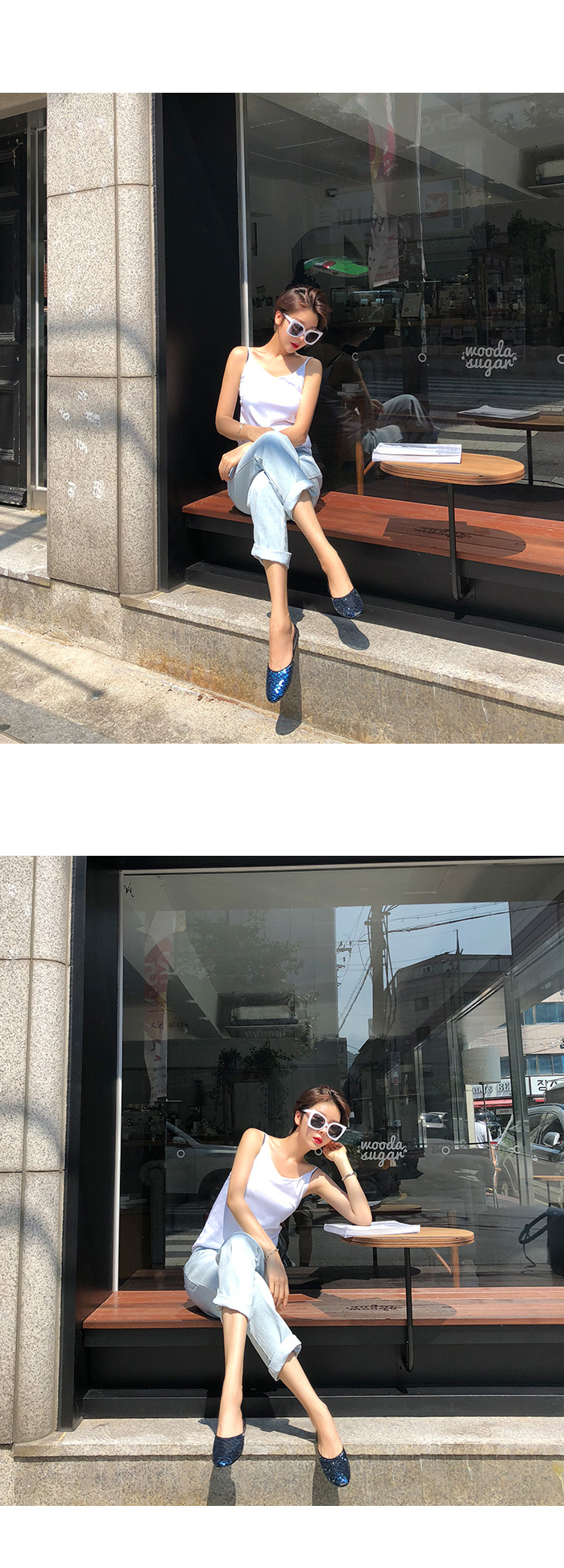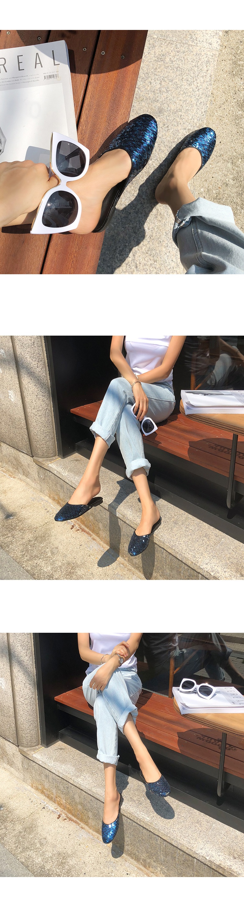 DETAILS - 소재 : 인조소가죽 스팽글 - 컬러 : pink,blue,multi - 피팅감 : 정사이즈 / 무게 : 보통인편 - 착화감 : 편해서 데일리 슈즈로 좋아요 - 모델피팅 : 230