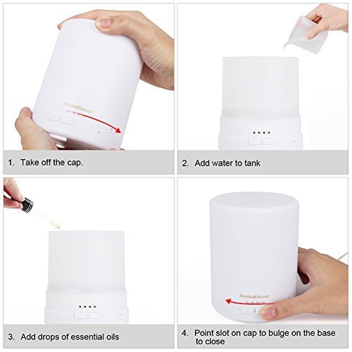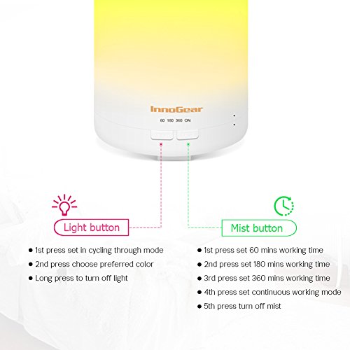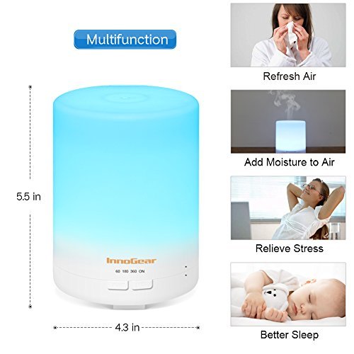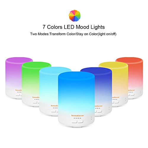 InnoGear 2nd Generation 300ml Aromatherapy Essential Oil Diffuser Aroma Cool Mist Humidifier with Timer Waterless Auto Shut-off and 14 Color LED Night...