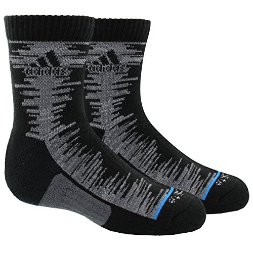 -. Binding : Apparel -. Brand : -. Department : Boys -. Feature : All over cushioning in the foot for comfort and durability / Arch compression gives you a secure and snug fit / Climalite moisture-wicking keeps your feet dry / Feature ' pair matching System with the stripe color on inside of cuff matching the size / Available in 2 sizes: medium fits shoe sizes 13C-4Y & large fits shoe sizes 3Y-9 -. Label : Agron Socks -. Manufacturer : Agron Socks -. ProductGroup : Sports -. ProductTypeName : SPORTING_GOODS -. Publisher : Agron Socks -. Studio : Agron Socks -. Title : Boys Youth 2-Pack High Quarter sock