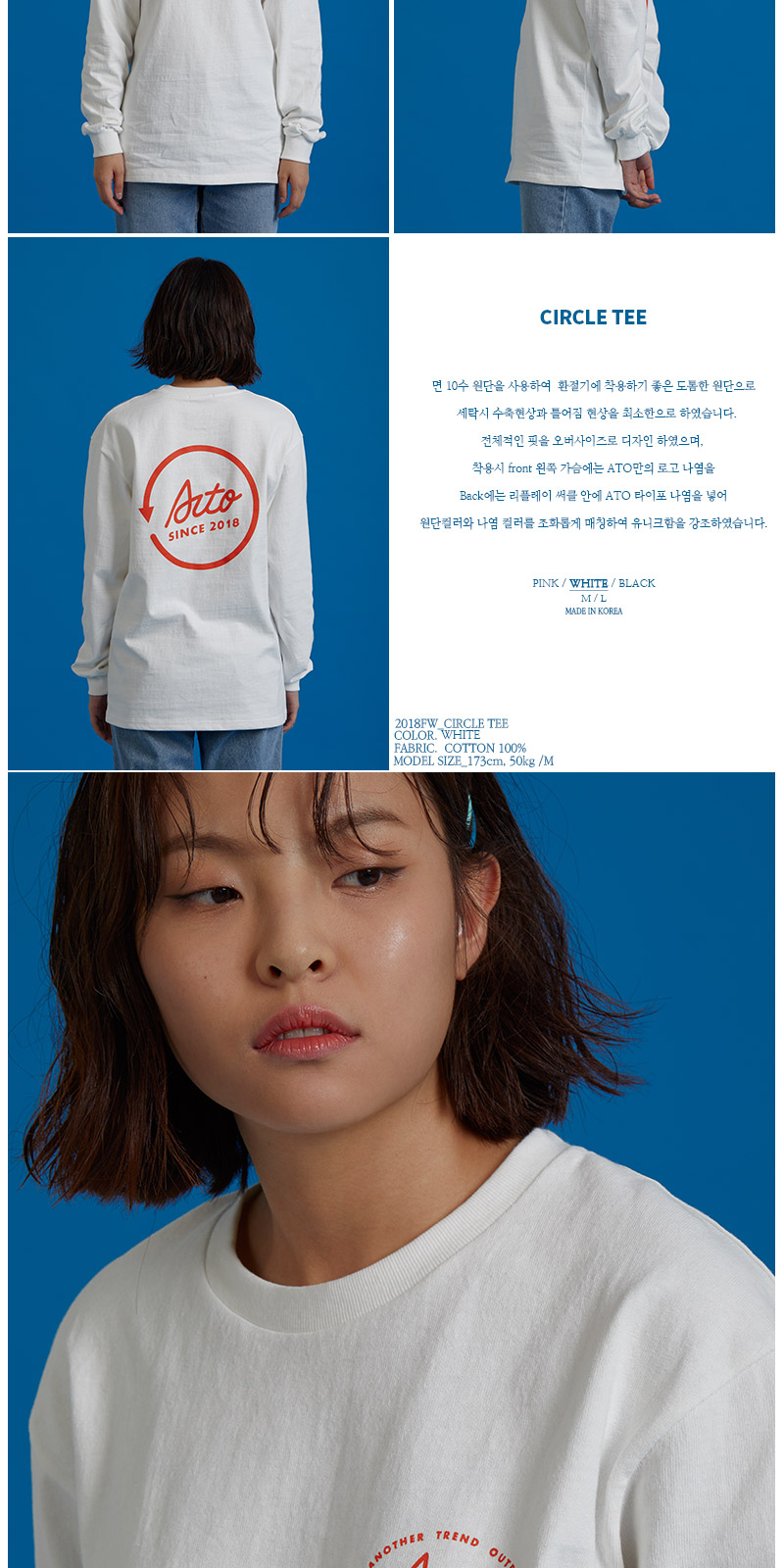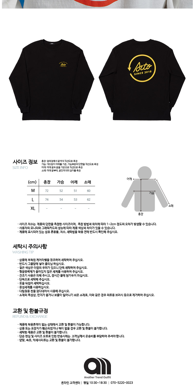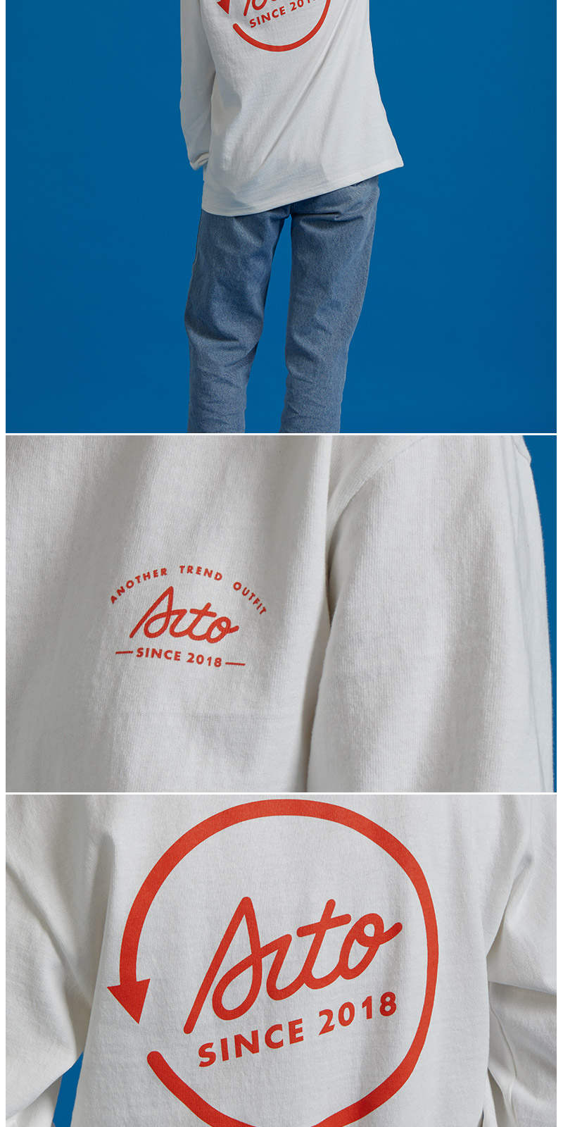 전체적인 핏을 오버사이즈로 디자인 하였으며, 착용시 front 왼쪽 가슴에는 ATO만의 로고 나염을, Back에는 리플레이 써클 안에 ATO 타이포 나염을