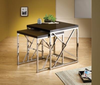 -. Title : Coaster 2 Piece Nesting Table With Gloss Black Table Tops 901043