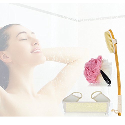 Package Included 1 x Curved Detachable Long Handle Bath Brush 1 x Loofah Back Scrubber 1 x Shower Sponge(color may vary)