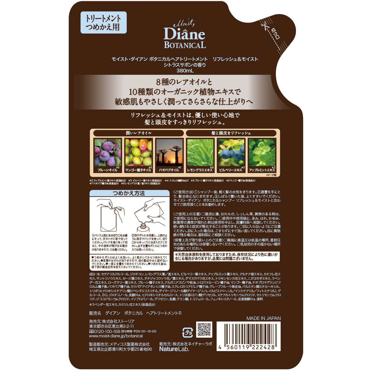 ● Botanical extract to refresh hair and scalp: Lemongrass extract (* 5) · Bilberry extract (* 6) · Apple mint extract (* 7) formulation