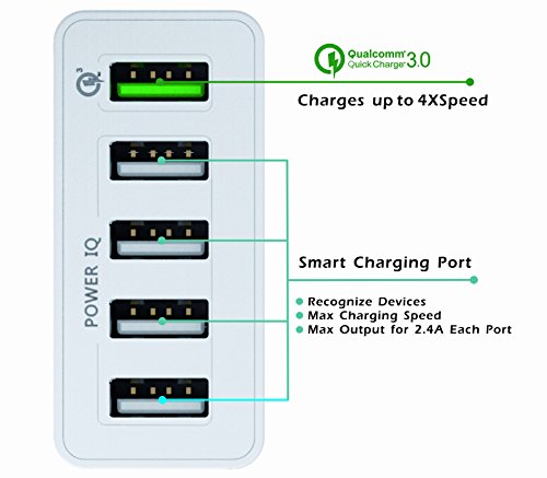-. Binding : Electronics -. Brand : V-CEN -. Color : White -. EAN : 0603149097056 -. Feature : Ultra Powerful: Total 10A 50W output ports for fast charging and standard charging; total 5 ports allow 5 devices to all charge simultaneously. / Exclusive iSmart Technology: All 5 USB ports are equipped with iSmart technology, which automatically detects and delivers the optimal charging current for connected devices. / Qualcomm QC 3.0 Technology: Ensures the fastest charging efficiency up to 80% in 35 minutes, 4x faster than standard charger. / Compact Design: High quality construction with durable housing, it will reduce the clutter of tangled cords and chargers in your home or office, and it's perfectly-sized for travelers. / Safety Guarantee: Built with Industry grade materials and premium circuitry, fully protect against over-current, overcharging and overheating for safe and fast charging. -. Label : V-CEN -. Manufacturer : V-CEN -. PackageQuantity : 1 -. ProductGroup : Wireless -. ProductTypeName : PHONE_ACCESSORY -. Publisher : V-CEN -. Studio : V-CEN -. Title : V-CEN 50W 10A Multiport USB Charger Desktop Charging Station with Quick Charge 3.0 and iSmart Technology for iPhone/ iPad/ Android Smartphones -. UPC : 603149097056