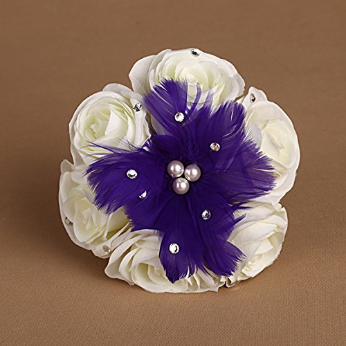 - Title : Coeus Blue Feather and White Rose Bridal Wedding Bouquet