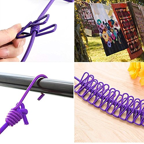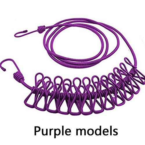 Portable Windproof Clothesline Rope Travel Clothesline- Adjustable Clothesline with 12pcs Clothespins for Outdoor and Indoor Use (purple)