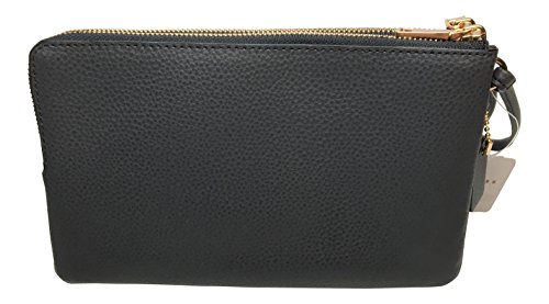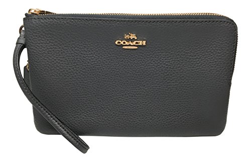 -. Title : Double Zip Pebble Leather Wristlet Wallet F87587 Midnight Blue