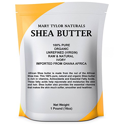 -. Feature : At Mary Tylor Naturals 100% Pure Organic Unrefined Shea butter, we make sure that the weight of every package of our Organic Shea butter is exactly or a little over 16 oz (1 lb), and usually it's a little over! Our Organic Unrefined Shea butter is Grade A and of the highest quality on the market. / To absorb the amazing Healing Properties of the Organic Unrefined Shea butter, it can be used directly on your Hair and Skin or as a base for your DIY luxurious body butters, scrubs, deodorants, rash creams, salves, lip balms, lotion bars and much more. / Our Organic Shea butter is Natural and Unrefined - no added chemicals, scents or preservatives. No added essential oils - suitable for sensitive skin. It is 100% free of parabens, sulfates and petroleum. / Purchase with confidence. We carry the highest quality organic Unrefined Shea butter on the market. If for some reason you are not completely satisfied with Mary Tylor Naturals Organic Unrefined Shea butter, we will refund or exchange your purchase. We provide exceptional customer service and you can contact us via the Amazon Contact Seller option at any time! / Our Unrefined Shea butter is loaded with natural vitamins A, E, Natural antioxidants and fatty acids for maximum moisturizing. It is considered one of the best natural skin moisturizer and anti-aging agent available. Helps restore elasticity of aging skin and prevent premature fine lines with the use of its organic fatty acids. Shea butter is an amazing moisturizer for skin smoothing and anti-aging and it also acts as a natural sunscreen by providing protection against the sun's UV light (about SPF-6).
