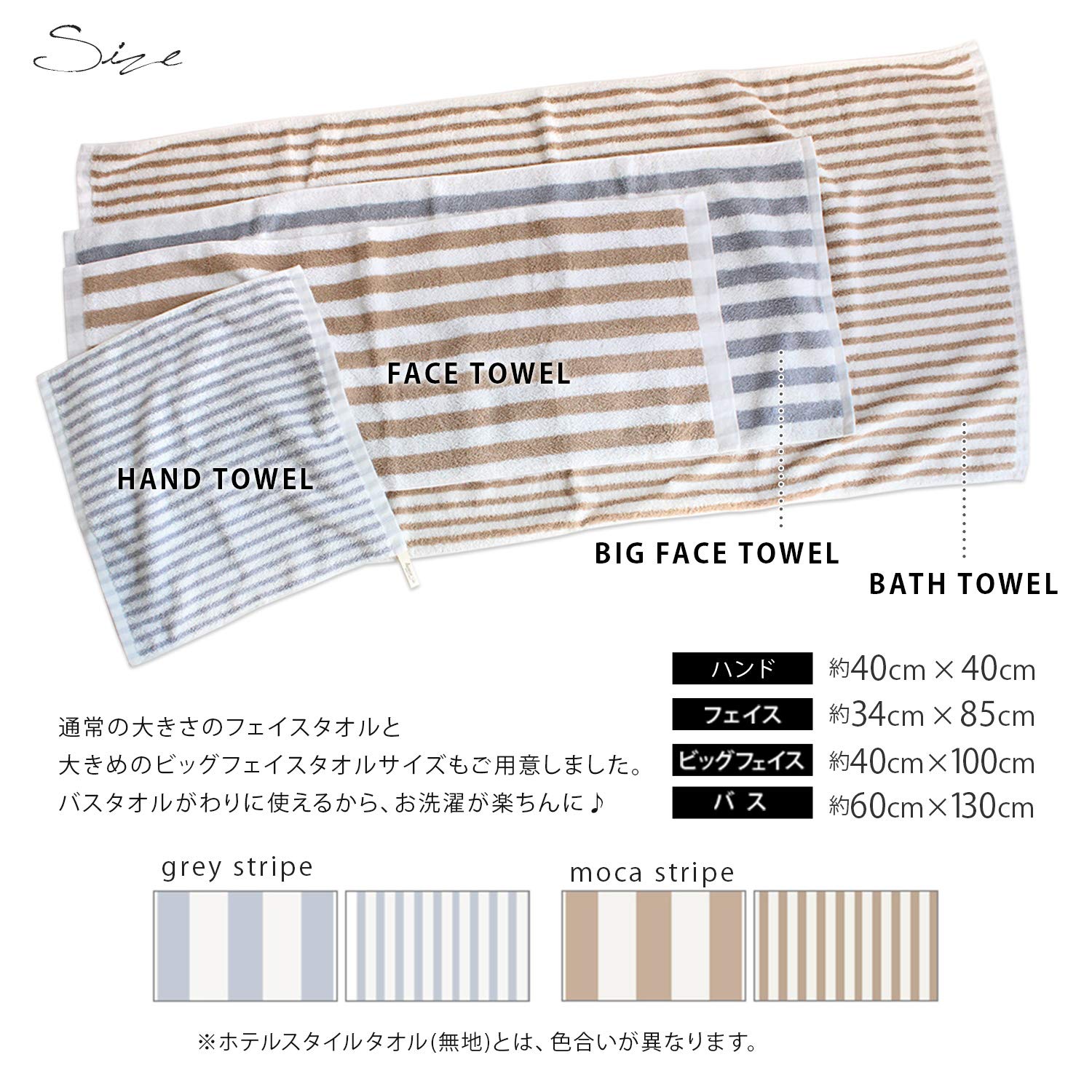 【フェイスタオル 4枚セット】生産地:日本(泉州タオル) 素材:綿100% サイズ・重さ:約34×85cm・約130g カラー:カラー:モカ、グレー セット内容:フェイスタオル 同色4枚、またはアソートメント4枚(モカ2枚+グレー2枚)