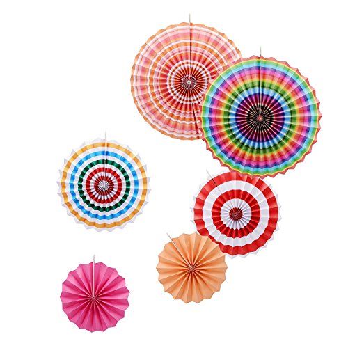 TtoyouU Bright Color Decorative Tissue Paper Hanging Fans,Wedding Party Home Decor,Set of 12 (Multicolor)