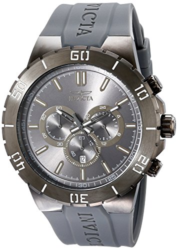 A flexible polyurethane strap and chronograph feature dial give this Pro Diver from Invicta a sporty and comfortable feel that will fit any man's tastes. The polished gunmetal ion plated stainless steel case makes for a stylish timepiece that will complete any man's collection.