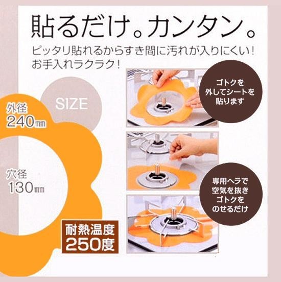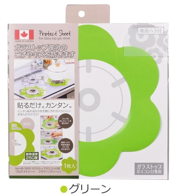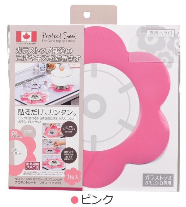 | 貼るだけでカンタンにガラストップ部分のこげやキズを防ぐ、お花の形が可愛いシートです。ピッタリ貼れるからすき間に汚れが入りにくく、お手入れもラクラクです。 |