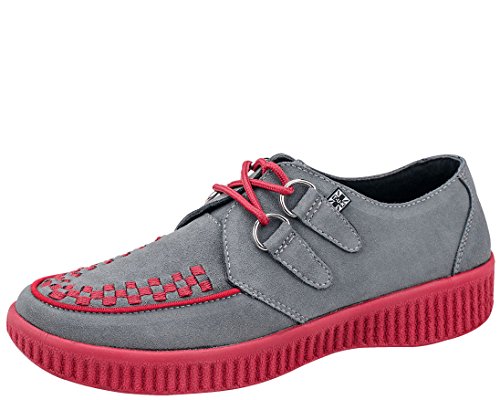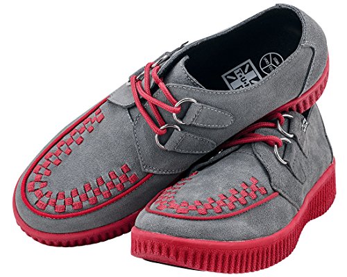 Studio : T.U.K. Publisher : T.U.K. Binding : Apparel Product Description Last few left! Get them before they're gone for good! Are you tired of constantly opening your closet and having the same old black, black and maybe a white shoe staring back at you? Then it's time for you to add some spice to your selection with these gray suede w/ daring red color pop T.U.K. VIVA CreepersO. Our T.U.K. VIVA CreepersO have an original creeper look, but the lightweight, flexible sole uses modern technology to revolutionize the traditional creeper. Tie up your silver metal d-rings and you'll feel a sudden pep in your step because these Viva Creepers are super comfortable. Long live comfort, style and originality... T.U.K. VIVA CreepersO! T.U.K. VIVA CreepersO are sold in U.S. men's sizes- please see our size chart or the size drop down list to view U.S. women's size equivalents. Want more??? See this shoe in the T.U.K. video "Tiny Dancer" here: 0