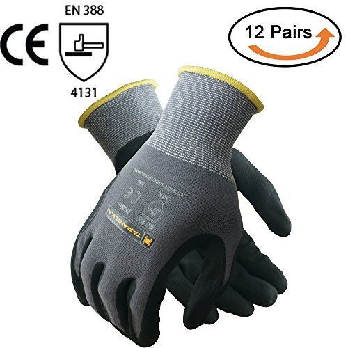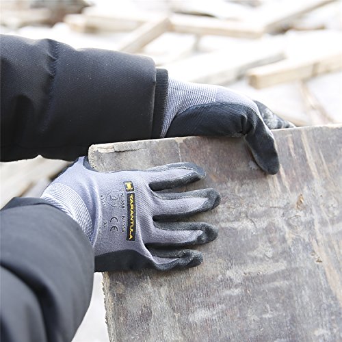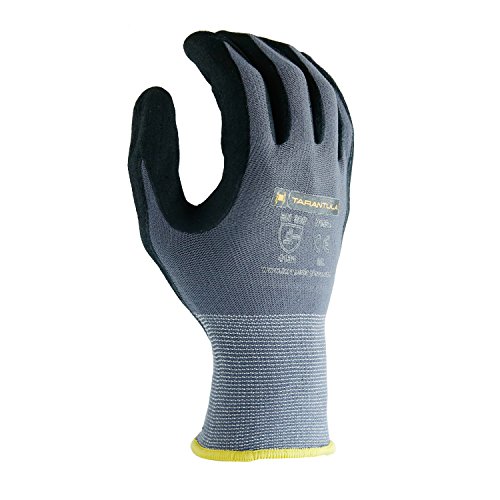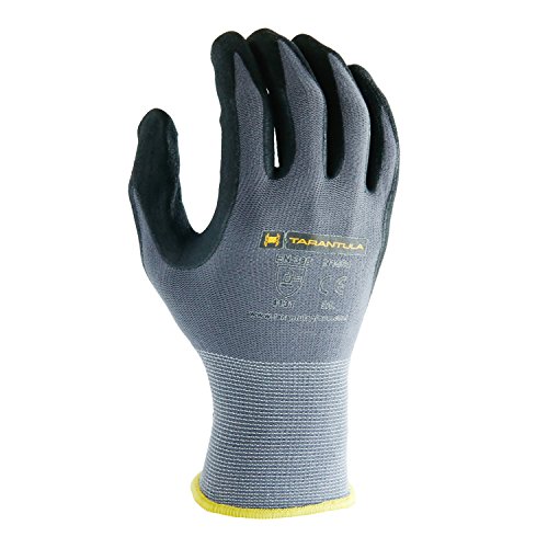 TARANTULA Nitrile Coated Safety Work Gloves, 13 Gauge Grey nylon/spandex shell with Black Breathable Foam Nitrile Coated on Palm and Fingers, 12 Pair Per Pack