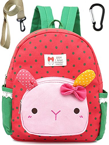 -. Feature : SIZE : 9.1in*3.9in*11.4in (L*W*H); Weight: ultra light design, only 0.52lb; / FABRIC : canvas, wear resistant and dirty, comfortable and environmentally friendly; Its back has a layer of cushioning layer, very soft and comfortable. / STRUCTURE: 1,there is a side pocket on each side of the Backpack. 2,There a pocket with zip in the front of the backpack. 3,The backpack looks is like a very cute little rabbit, and very suitable for the little girl. / STYLE : This backpack has a total of 4 colors (green, blue, pink, red). Its capacity is enough to hold all the things that your children need for school ,such as books, pencil box, iPad and so on. If you go to travel or hiking, you also can pack the things that owned by your children, such as cup, snacks ,toy and lunch box etc. / Children age and height range: under 36 months age or Height below 3.6 feet.