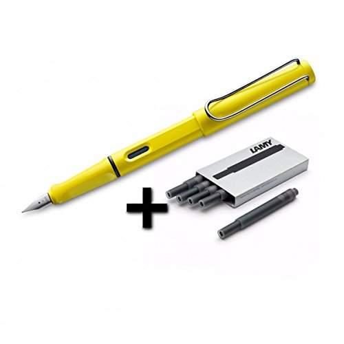 -. Binding : Office Product -. Brand : Lamy -. Color : Black -. EAN : 4260418590654 -. Feature : Lamy Safari Fountain Pen (14M) Yellow & 5 Black Ink Cartridges / Medium Nib - Made in Germany European packaging - No warranty leaflet included Metal clip, efficient and practical, ensuring you never loose your pen The body comes in a shiny yellow colour Includes an ink cartridge T 10 blue LAMY inside the pen May be used with the converter LAMY Z 28 - purchase separately High- Quality / Material The body of the fountain pen is made of sturdy ABS plastic. The nib is made of polished stainless steel The clip is metal / What is in the box? 1 x Lamy Safari Fountain Pen (14M) Yellow 5 x Black Lamy Ink Cartridges -. Label : Lamy -. Manufacturer : Lamy -. MPN : 14M -. PartNumber : 14M -. ProductGroup : Office Product -. ProductTypeName : WRITING_INSTRUMENT -. Publisher : Lamy -. Studio : Lamy -. Title : Lamy Safari Fountain Pen (14M) Yellow & 5 Black Ink Cartridges