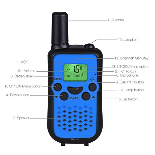 Easy to Use: Big Call/PTT button, easy and clear to enter. LCD display showing channels, volume, VOX, battery status to help you to adjust the walkie talkie for your kids