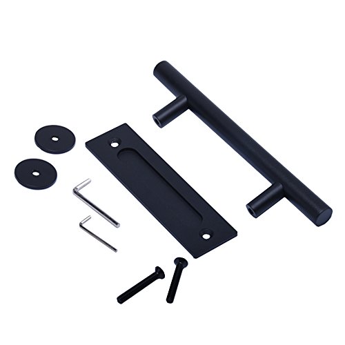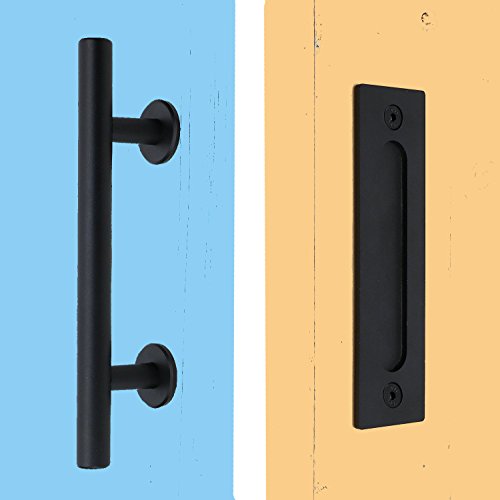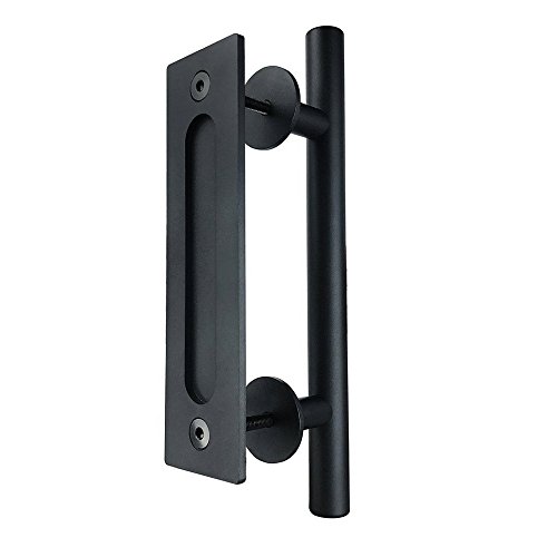 Seeutek 12 Inch Pull and Flush Door Handle Set in Black Sliding or Wood Barn Door Hardware Handle with Mount Screws Included